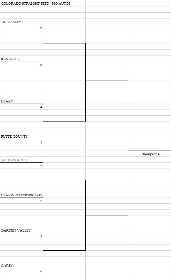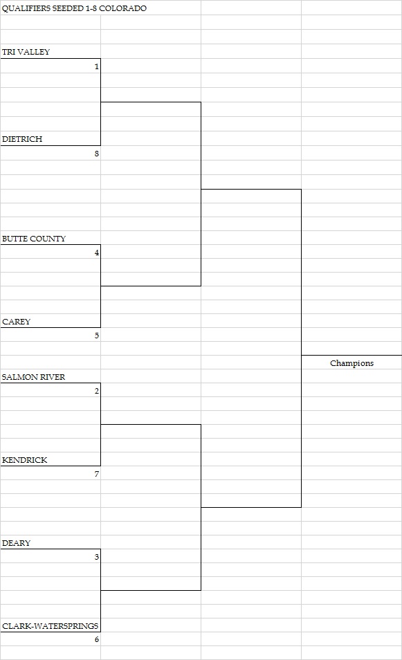 On the top half of the bracket, Tri-Valley would again host Dietrich in the 1 vs 8 matchup and below them would be Butte County hosting Carey in the 4 vs 5 game.