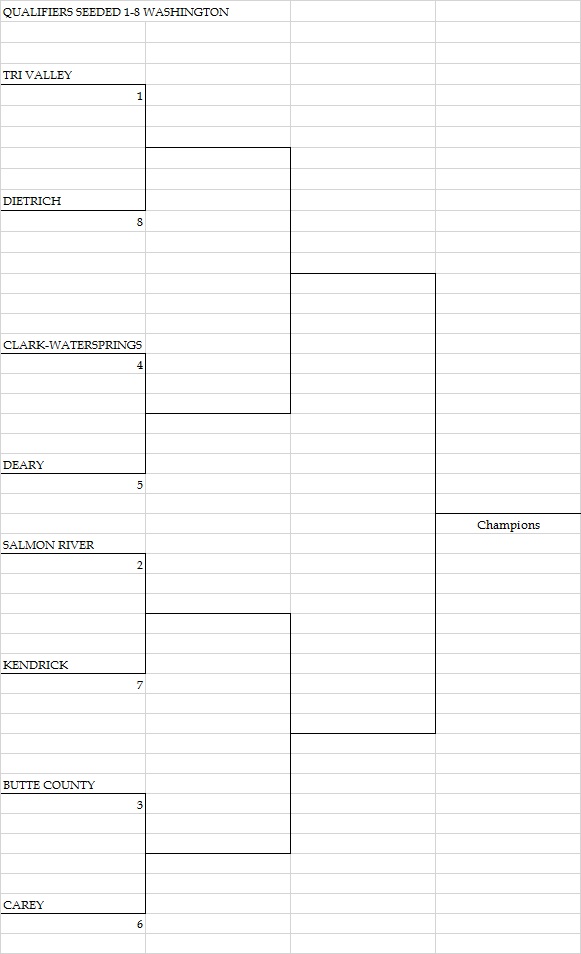 On the bottom half of the bracket, Salmon River and Kendrick would remain in the 2 vs 7 matchup, but Deary would now host Clark-Watersprings in the 3 vs 6 game.