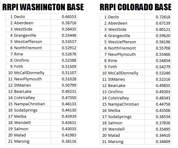 You will see three different brackets below - the first one using the RRPI Washington base formula, followed by the RRPI Colorado base formula, and finally the RRPI Colorado base 'No Autos'.