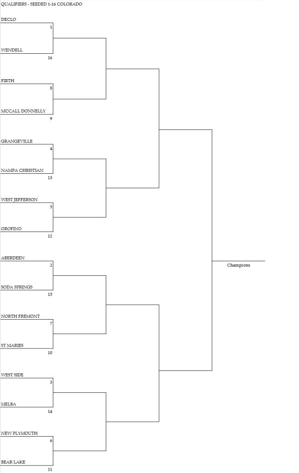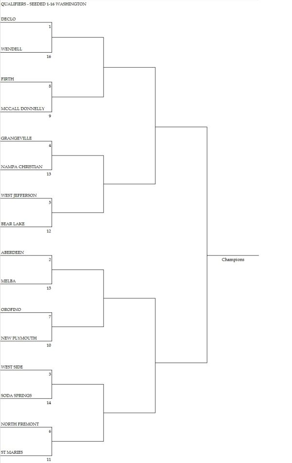 A few things change in comparison to the actual, real bracket used for this year's tournament. Declo and Wendell would square off again in a rematch of their lone conference game. Firth would host McCall-Donnelly, Grangeville would take on Nampa Christian, and West Jefferson would host Bear Lake.