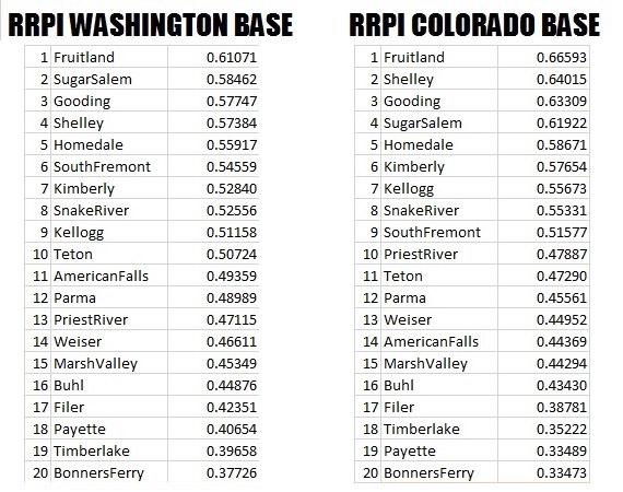 You will see three different brackets below - the first one using the RRPI Washington base formula, followed by the RRPI Colorado base formula, and finally the RRPI Colorado base 'No Autos'.