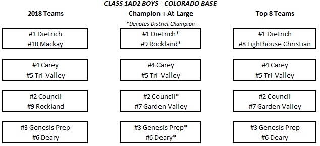Here’s a look at how the Class 1AD2 "Washington" and "Colorado" base rankings appeared following the completion of the district tournaments and state play-in games.