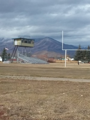 The view from the press box at Horseshoe Bend High School before a 2017 playoff game against Challis.