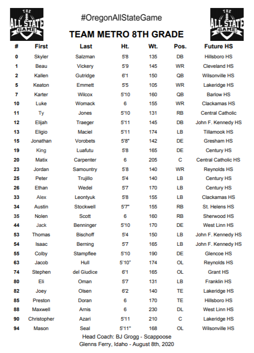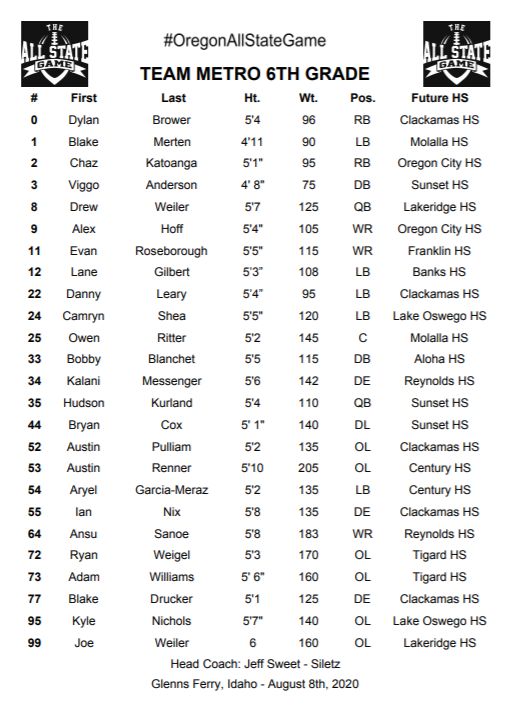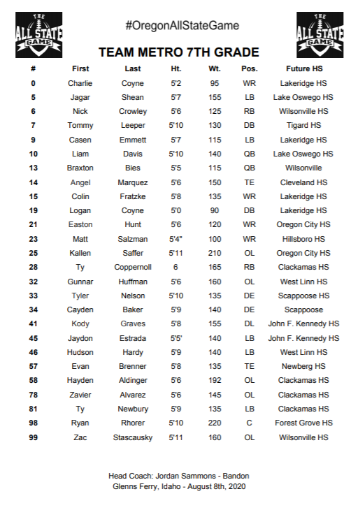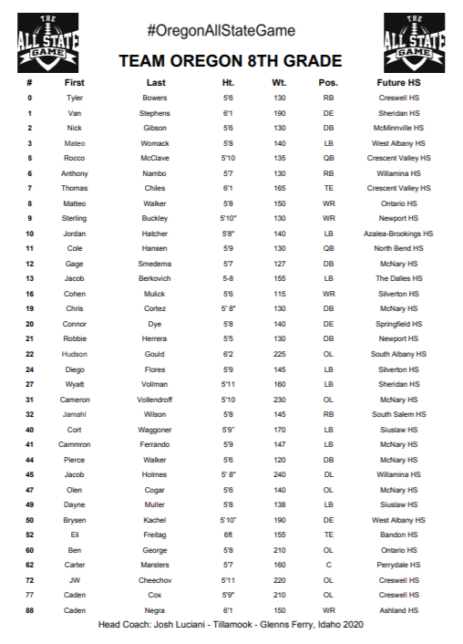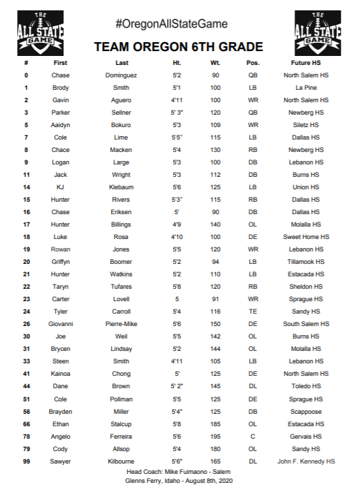 Rising stars of Oregon high school football hit the gridiron Aug. 8 in Glenns Ferry for the third annual Oregon All-State Game. IdahoSports.com broadcasted all three games between Oregon's best sixth, seventh and eighth graders live.
