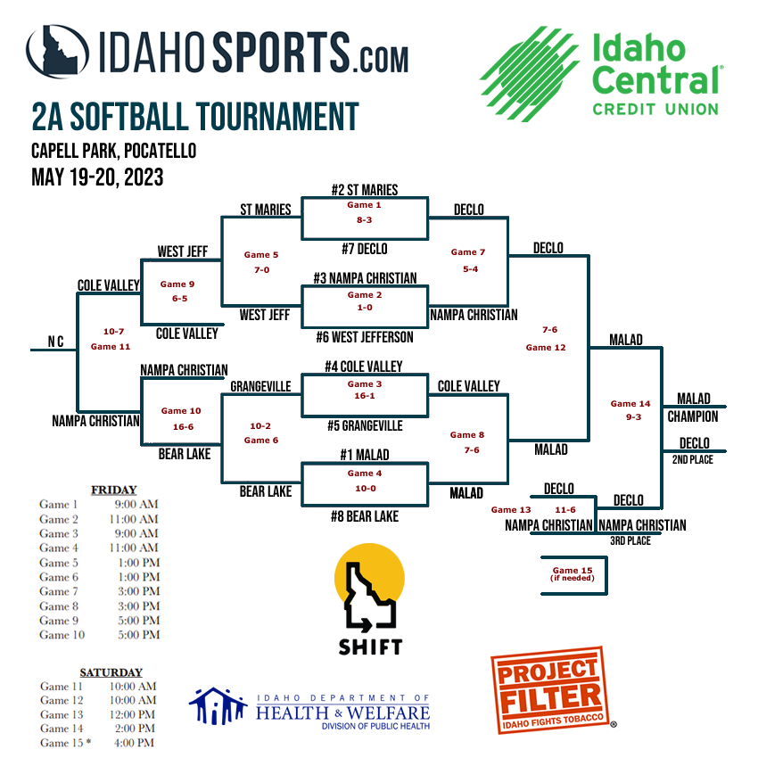 5A Bracket | 4A Bracket | 3A Bracket | 2A Bracket | 1A Bracket Season Schedules & Results | Printable 2A Bracket