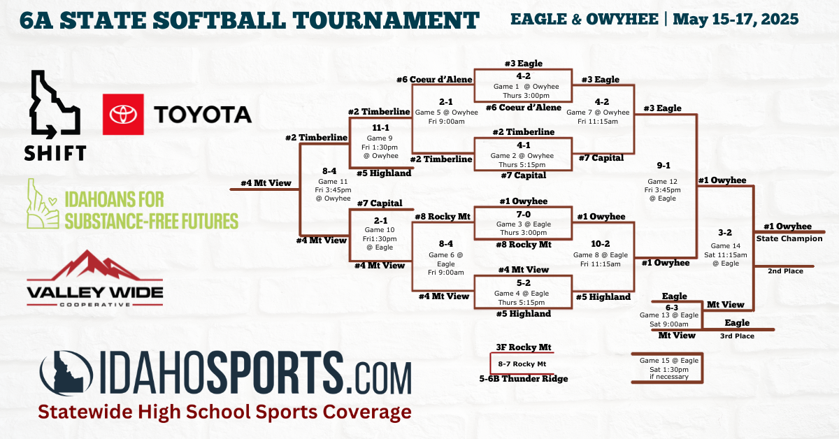 Updated Brackets and Other Information for the 6A Idaho High School State Softball Tournament