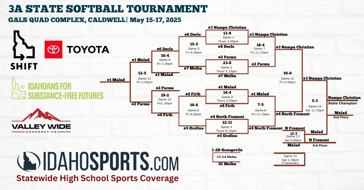 Updated Brackets and Other Information for the 3A Idaho High School State Softball Tournament