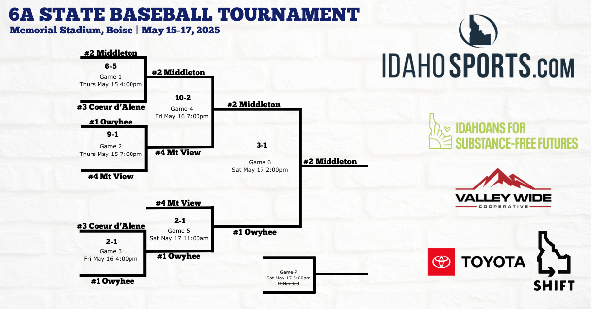 Updated Bracket and Information for the 6A Idaho High School State Baseball Tournament