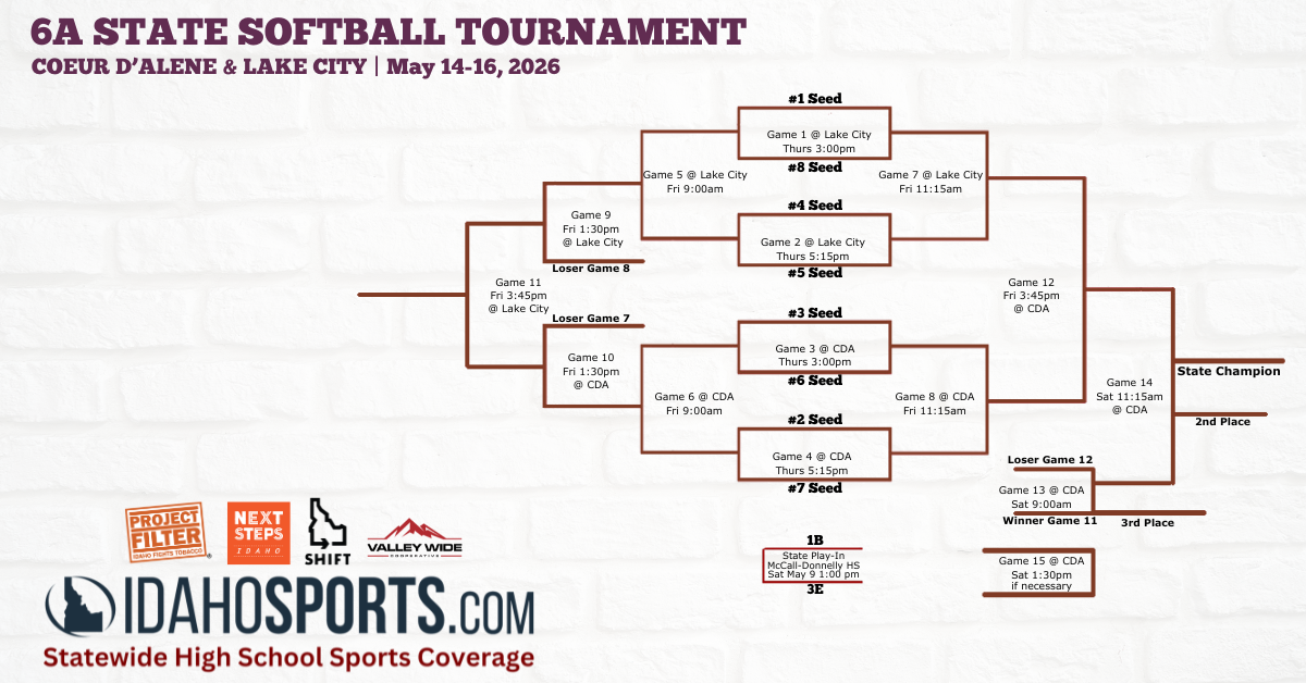 Updated brackets and other information for the 6A Idaho High School State Softball Tournament