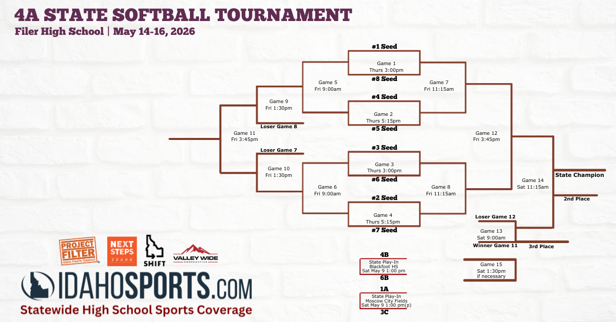 Updated brackets and other information for the 4A Idaho High School State Softball Tournament