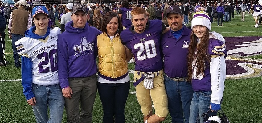 The Shepherd family after a College of Idaho football game, Left to Right: Johnny, Jimmy, Susan, Charlie Jr., Charlie Sr. and Chevelle.