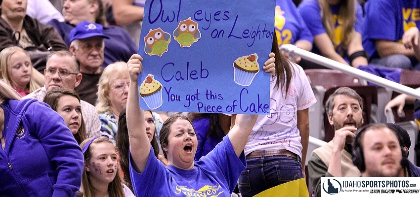 Salmon River fans cheer on their team during a basketball state championship game.