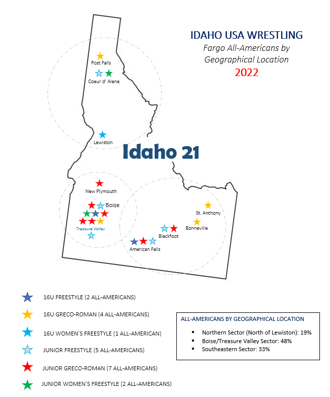 In summary, the state of Idaho is making a big statement on the national scene. Case in point, the past couple of years has experienced an exponential increase in the number of All-Americans produced annually at Fargo, Folkstyle Nationals, and other national level events.