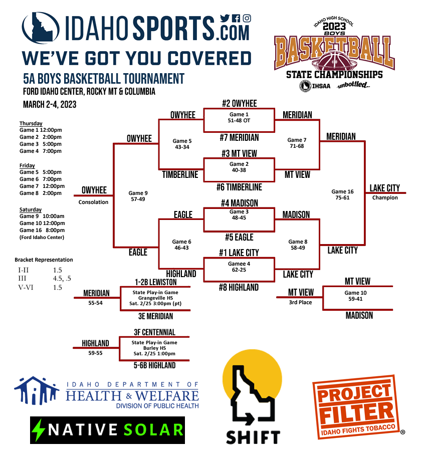 2023 Idaho 5A State Boys Basketball Tournament Bracket
