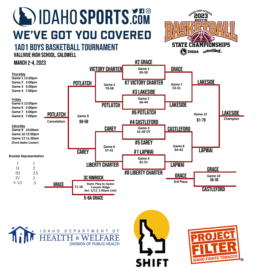 Printable 1AD1 Bracket Season Schedules & Team Rosters Tournament Photo Galleries Tournament GameStreams (LISTEN LIVE TO EVERY GAME!)