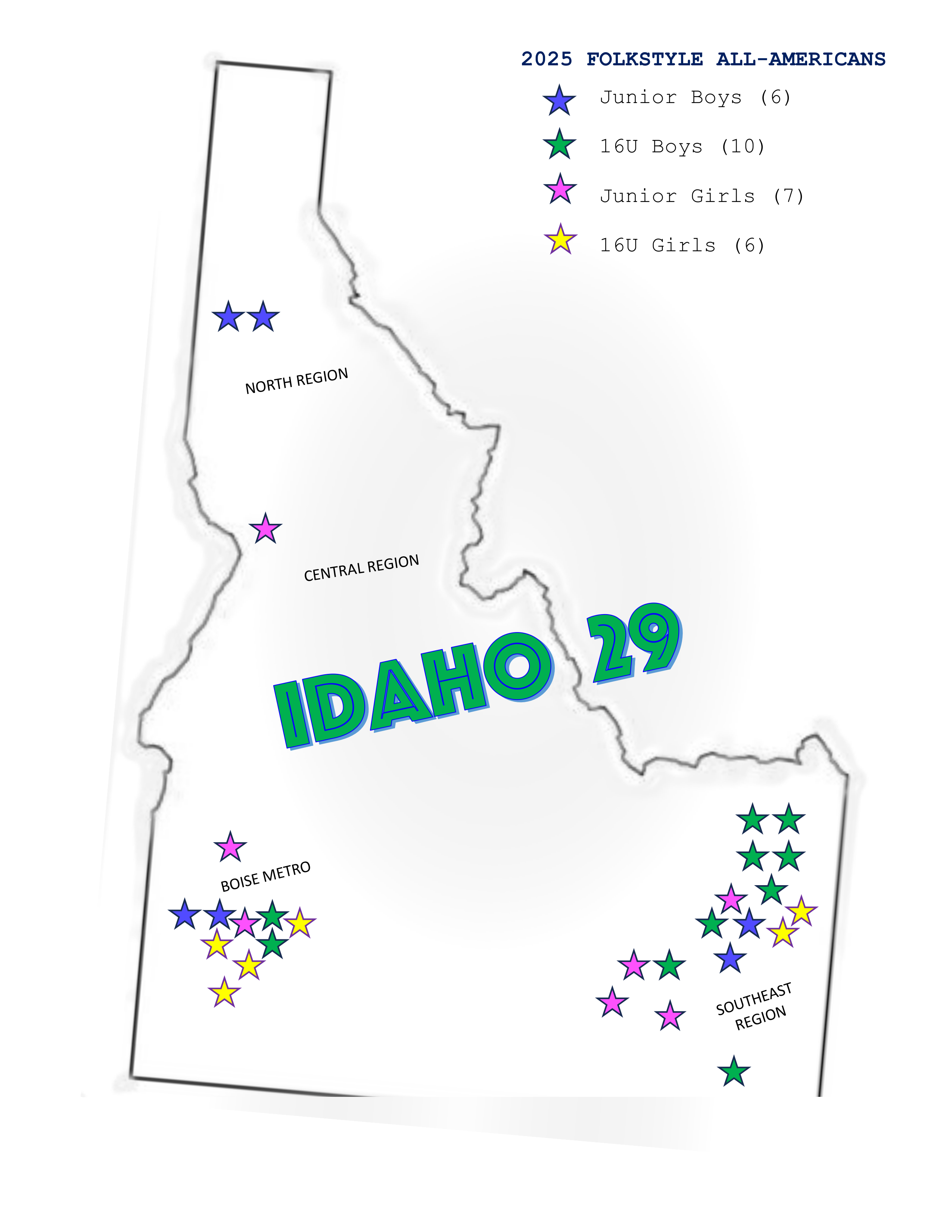 Below is the list of twenty-nine 16U/Junior ALL-AMERICANS from Team Idaho in addition to the final results for each division (boys/girls).